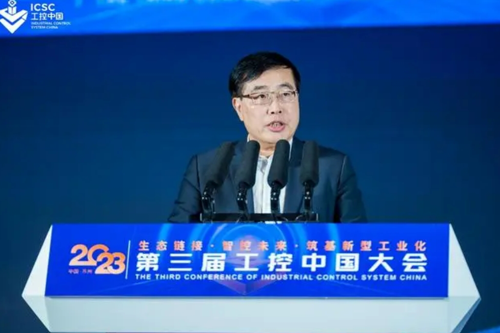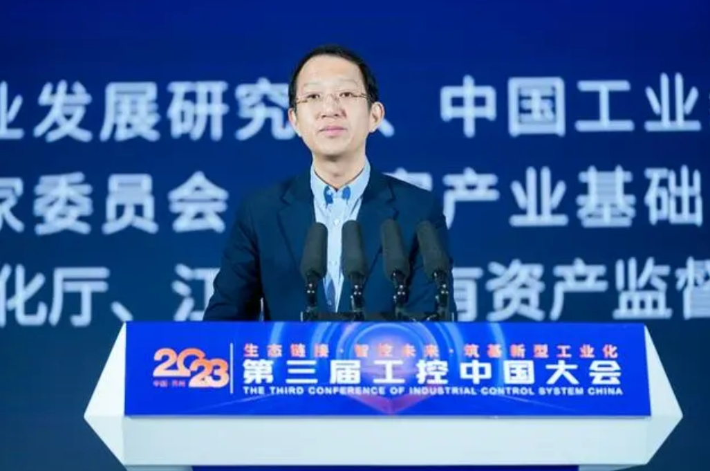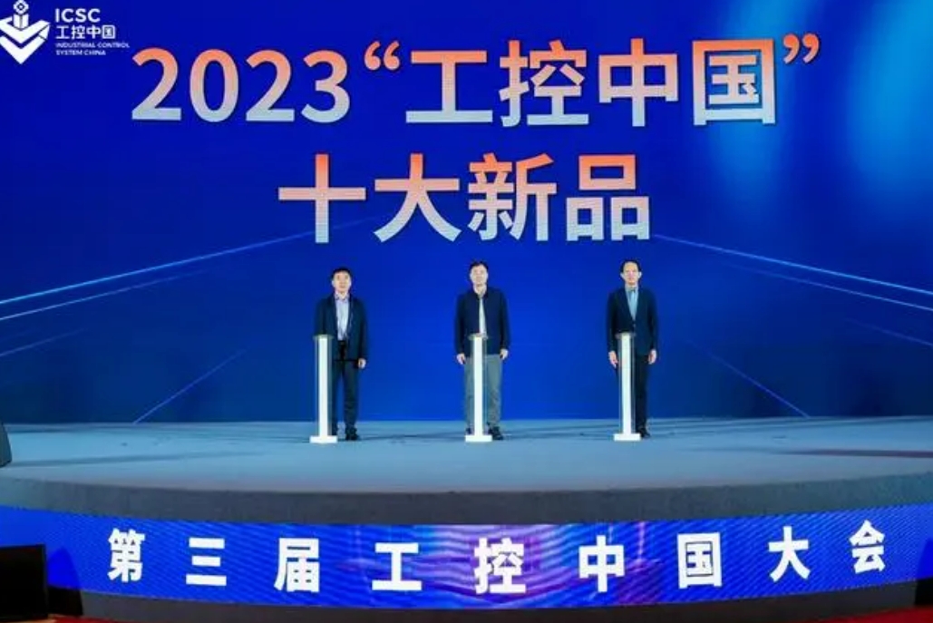 2023“工控中国”十大新品发布仪式现场,由中国电子信息产业发展研究院总工程师高炽扬、江苏省工业和信息化厅副厅长池宇、中国工业互联网研究院总工程师王宝友共同发布2023工控中国十大新品。